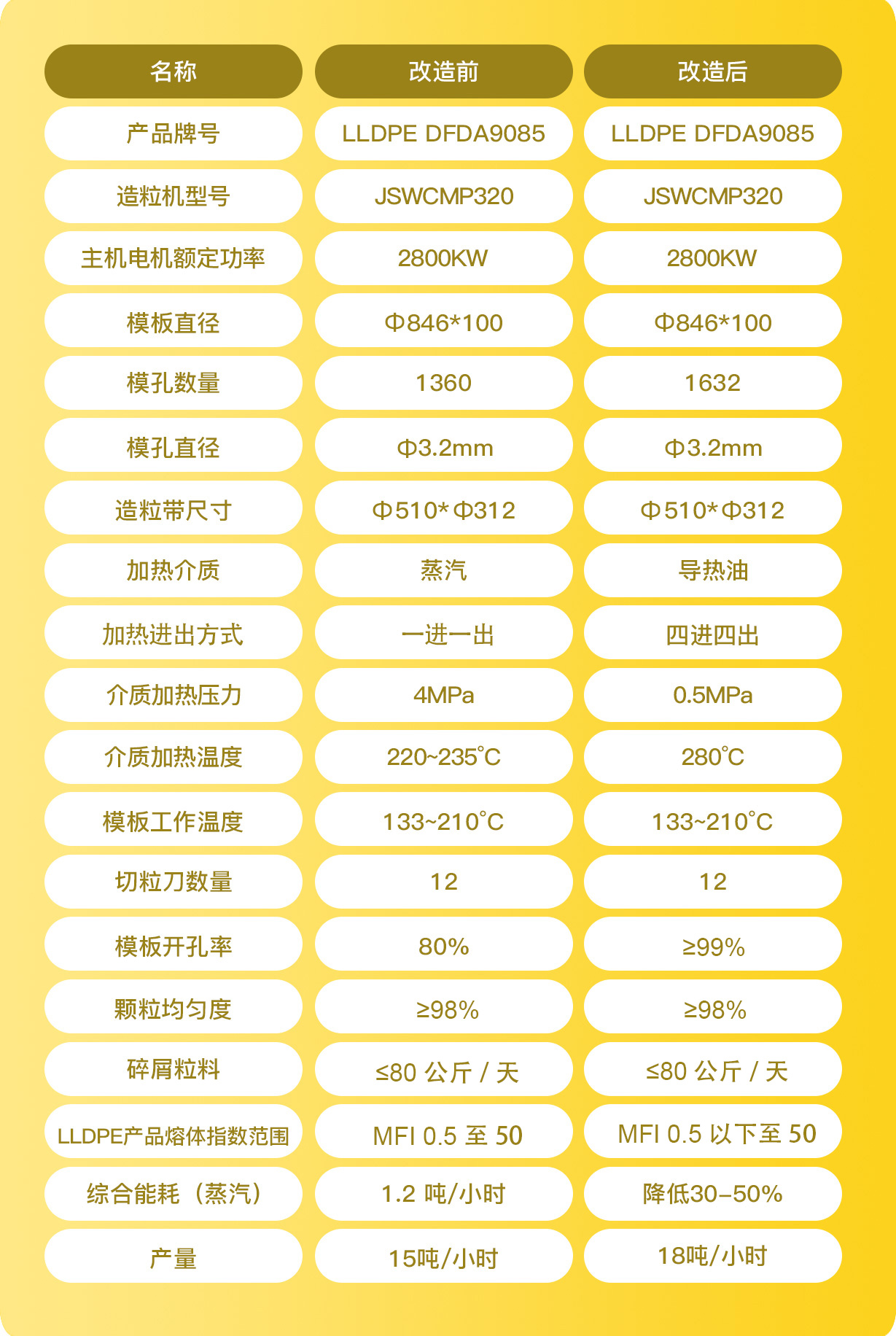 改造后造粒模板技术参数