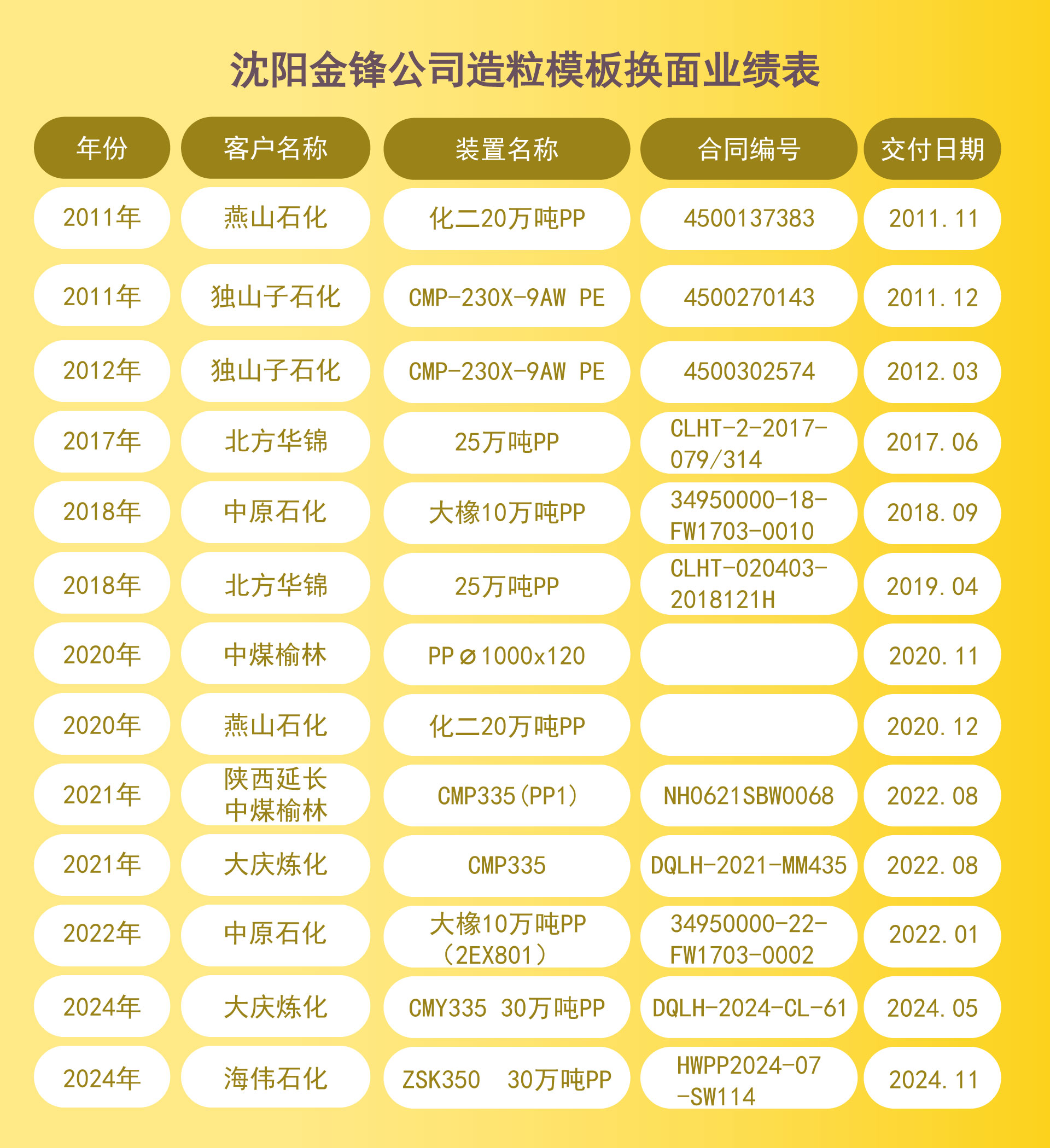 沈阳金锋公司具有多年的造粒模板制造和换面经验以及成熟的技术工艺,同时拥有大量的技术人员,即可保证换面的质量和周期,也可以根据客户需求对换面模板提供及时的开车、安装、售后等相关服务。